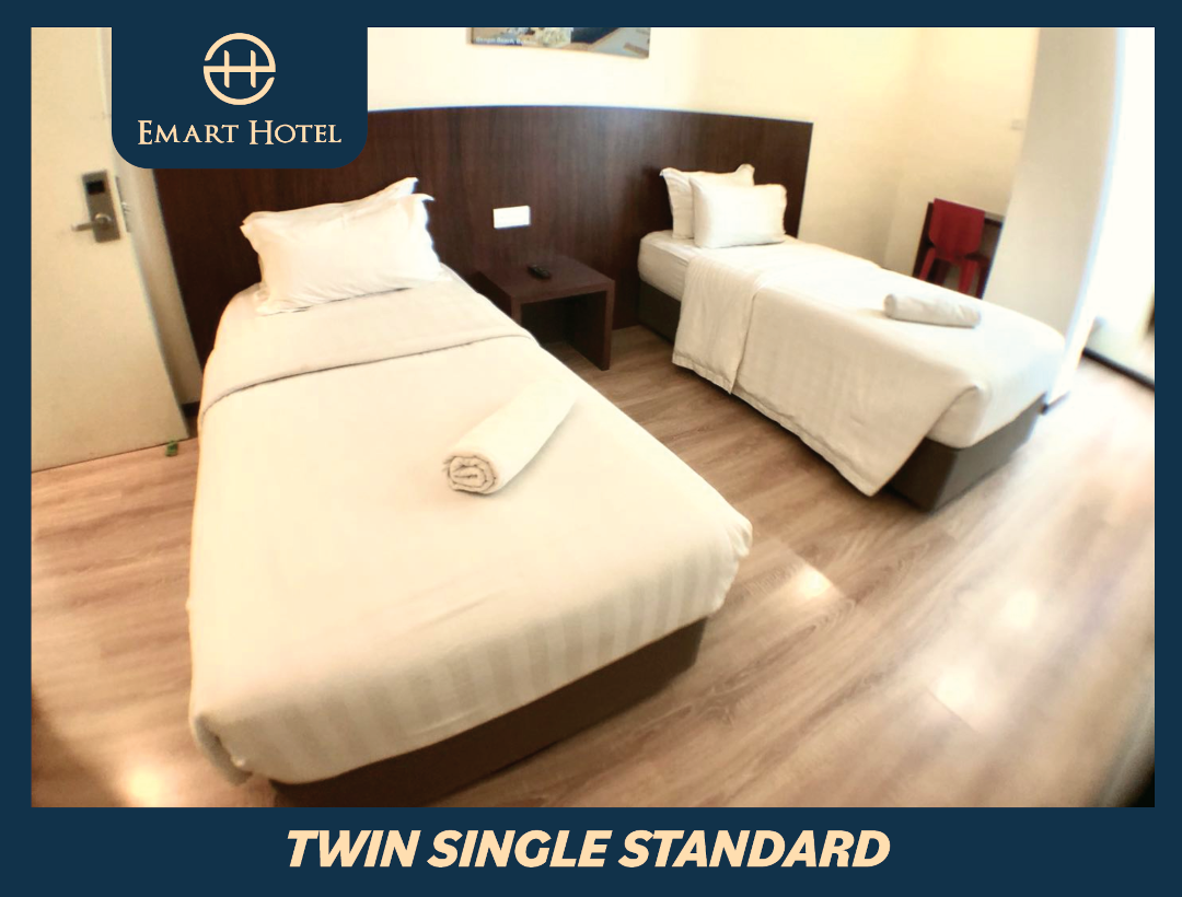 If you are traveling with a friend or a family member, the Twin Single Standard Room without Window is a good option for you. This room features two single beds, a private bathroom with a shower and free toiletries, a 32-inch LCD TV with satellite channels, an electric kettle, and free WiFi. The room is also air-conditioned and has daily housekeeping service. You can also access the 24-hour front desk and the free parking available at the hotel.